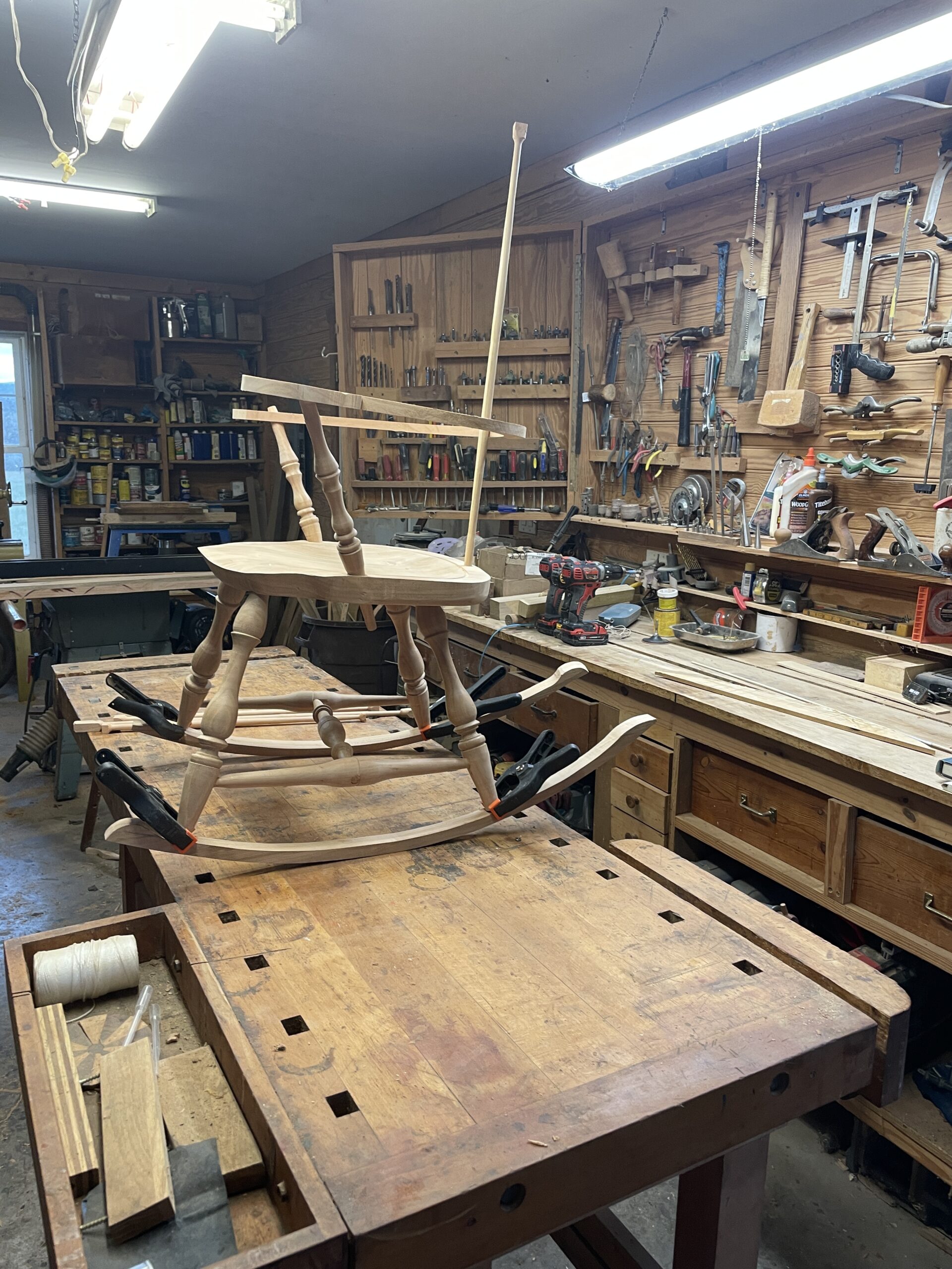 Cherry rocking chair under construction