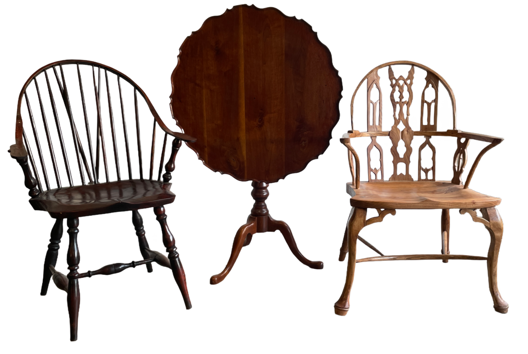 Two windsors and a pie crust table.